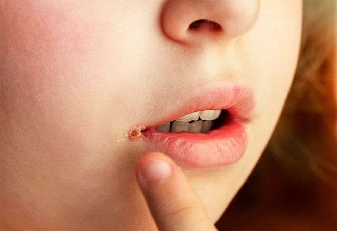 - микротравмы кожи вокруг рта при падениях, царапинах.