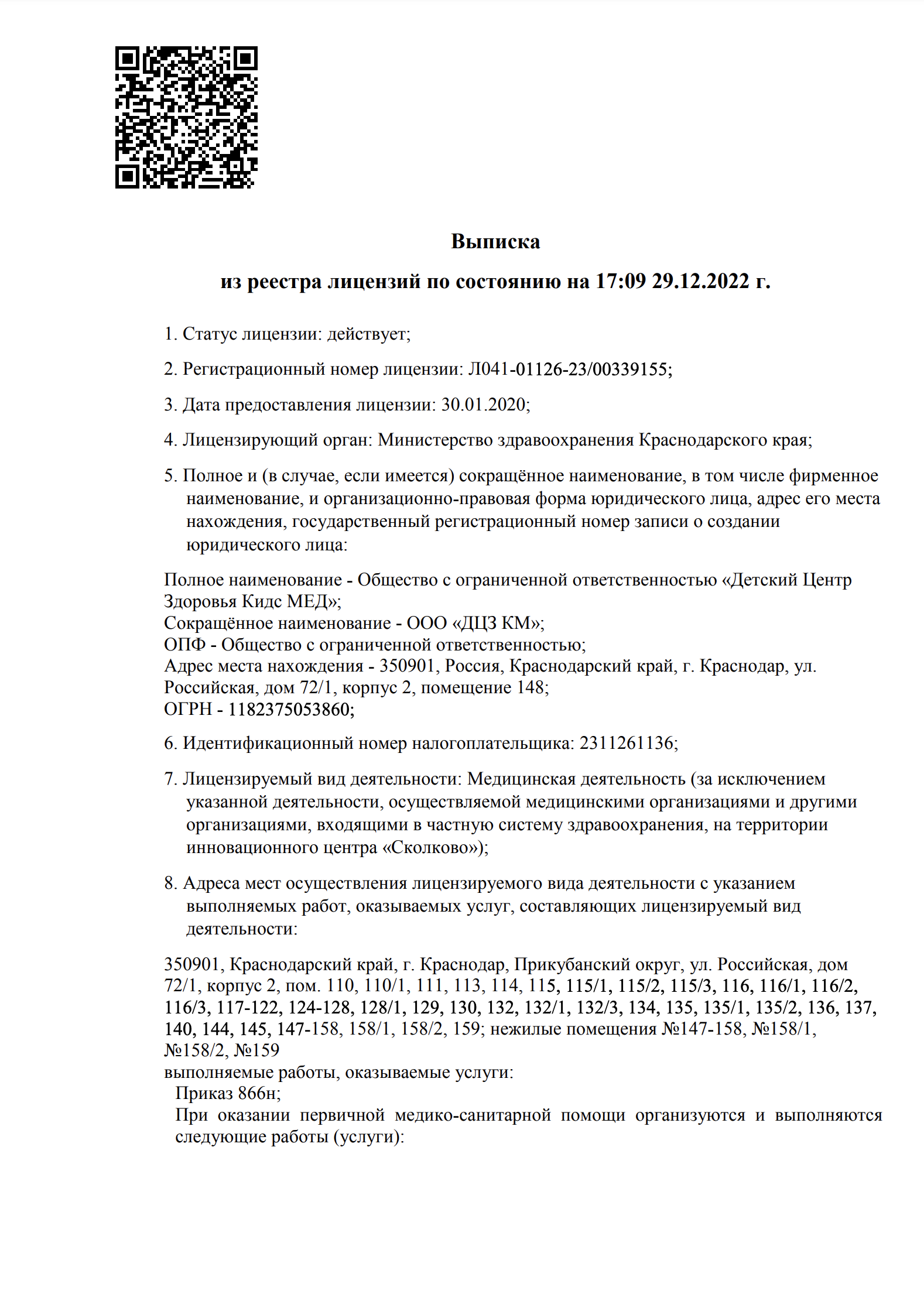 Выбирая нашу клинику «Kids-Med», вы можете быть уверены в точности диагностики и высоком уровне предоставляемых услуг. Мы заботимся о вашем здоровье и предлагаем лучшие медицинские решения.